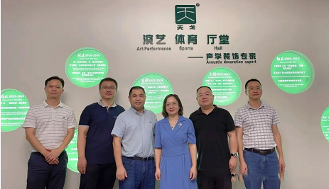 天戈聲學(xué)黃小剛總經(jīng)理首先對里水鎮(zhèn)鄧秀娟鎮(zhèn)長等領(lǐng)導(dǎo)的到來表示熱烈歡迎, 隨后陪同參觀了天戈聲學(xué)營銷中心、吸音隔音科普基地以及天戈聲學(xué)裝飾設(shè)計(jì)院,并詳細(xì)介紹了天戈聲學(xué)品牌發(fā)展歷程、企業(yè)文化及未來規(guī)劃;鄧秀娟鎮(zhèn)長親身體驗(yàn)專業(yè)聲學(xué)混響室,感受了做吸音材料前后混響時(shí)間的巨大區(qū)別,鄧鎮(zhèn)長對天戈聲學(xué)十多年來作為該細(xì)分行業(yè)龍頭對產(chǎn)品的研發(fā)和創(chuàng)新贊不絕口,鄧鎮(zhèn)長表示,天戈聲學(xué)作為里水本地企業(yè)能夠參與眾多國家重大項(xiàng)目的建設(shè),并將聲學(xué)產(chǎn)品賣到100多個(gè)國家感到自豪!