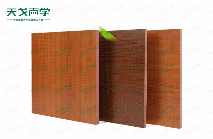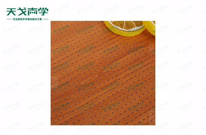 天戈0.5mm微孔吸音板飾面顏色及材料選擇性廣,孔徑、孔距可根據客戶要求調整,能很好地滿足客戶多樣化的聲學及裝飾需求。孔木吸音板對吸聲頻譜選擇性較強,對中低頻有很好的吸聲性能。如在吸聲結構后空腔上填入適量的吸聲棉可提高中、高頻吸聲效果。