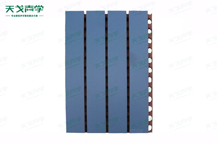天戈演播廳槽條吸音板是一種在密度板的正面開槽、背面穿孔的狹縫共振吸音材料,多孔式吸音設(shè)計,有效使聲波的能量消耗變換成熱能達到吸音效果。槽木吸音板對演播廳吸聲頻譜選擇性很強,對中低頻有很好的吸聲性能,吸聲頻譜寬、低頻吸聲系數(shù)高。若在吸聲結(jié)構(gòu)后空腔填入適量的吸聲棉可提高中、高頻吸聲效果,標準化模塊設(shè)計,采用插槽、龍骨結(jié)構(gòu),安裝簡易,常用于墻面或天花裝飾。