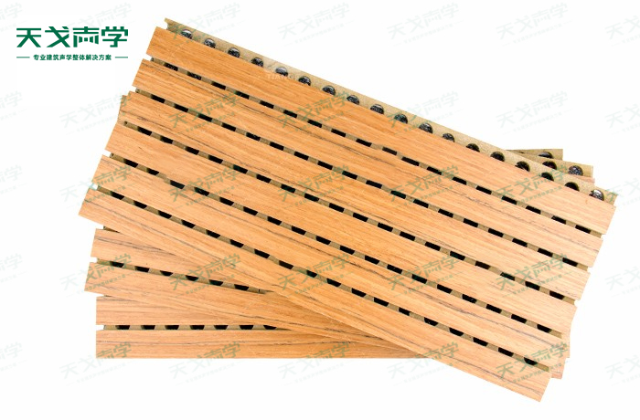 天戈環保槽木吸音板是一種在密度板的正面開槽、背面穿孔的狹縫共振吸音材料。槽木吸音板對吸聲頻譜選擇性很強,對中低頻有很好的吸聲性能。若在吸聲結構后空腔填入適量的吸聲棉可提高中、高頻吸聲效果,標準化模塊設計,采用插槽、龍骨結構,安裝簡易,常用于墻面或天花裝飾。