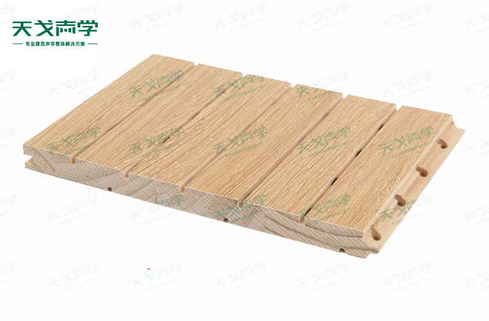 天戈會議廳槽木吸音板是一種在密度板的正面開槽、背面穿孔的狹縫共振吸音材料。槽木吸音板對吸聲頻譜選擇性很強,對中低頻有很好的吸聲性能。若在吸聲結構后空腔填入適量的吸聲棉可提高中、高頻吸聲效果,標準化模塊設計,采用插槽、龍骨結構,安裝簡易,常用于墻面或天花裝飾。