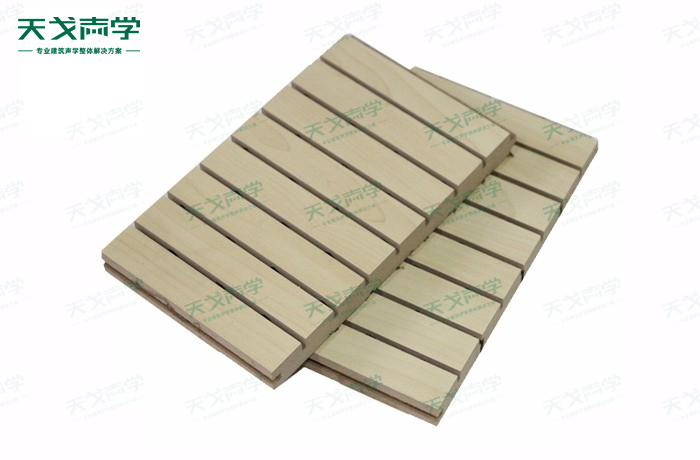 天戈禮堂槽木吸音板是一種在密度板的正面開槽、背面穿孔的狹縫共振吸音材料。槽木吸音板對吸聲頻譜選擇性很強,對中低頻有很好的吸聲性能。若在吸聲結構后空腔填入適量的吸聲棉可提高中、高頻吸聲效果,標準化模塊設計,采用插槽、龍骨結構,安裝簡易,常用于墻面或天花裝飾。