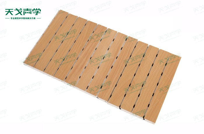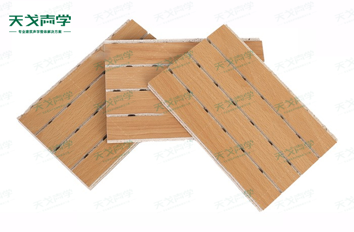 天戈防火玻鎂吸音板是一種在密度板的正面開槽、背面穿孔的狹縫共振吸音材料。玻鎂吸音板對吸聲頻譜選擇性很強,對中低頻有很好的吸聲性能。若在吸聲結構后空腔填入適量的吸聲棉可提高中、高頻吸聲效果,標準化模塊設計,采用插槽、龍骨結構,安裝簡易,常用于墻面或天花裝飾。