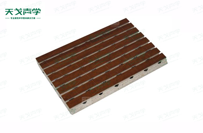 天戈玻鎂吸聲板是一種在密度板的正面開槽、背面穿孔的狹縫共振吸音材料。玻鎂吸音板對吸聲頻譜選擇性很強,對中低頻有很好的吸聲性能。若在吸聲結構后空腔填入適量的吸聲棉可提高中、高頻吸聲效果,標準化模塊設計,采用插槽、龍骨結構,安裝簡易,常用于墻面或天花裝飾。
