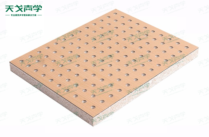 天戈白色玻鎂穿孔吸音板飾面顏色及材料選擇性廣,孔徑、孔距可根據客戶要求調整,能很好地滿足客戶多樣化的聲學及裝飾需求。穿孔吸音板對吸聲頻譜選擇性較強,對中低頻有很好的吸聲性能。如在吸聲結構后空腔上填入適量的吸聲棉可提高中、高頻吸聲效果。
