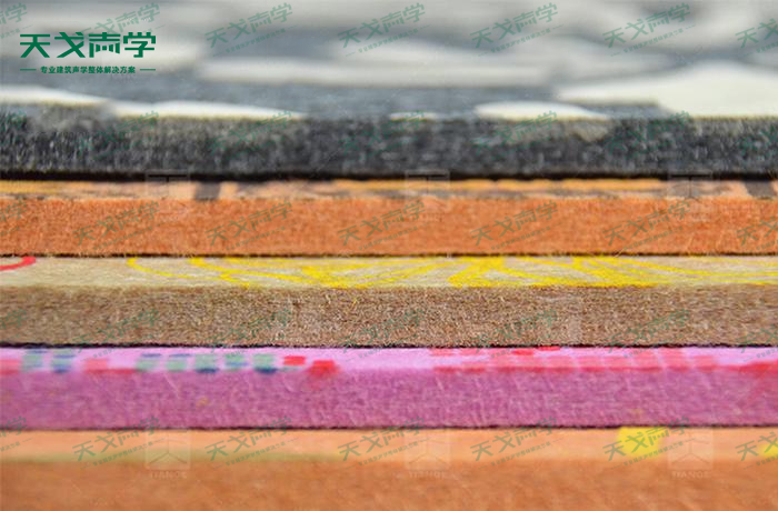 植絨吸音板材質(zhì):聚酯纖維+尼龍絨毛+印花顏料