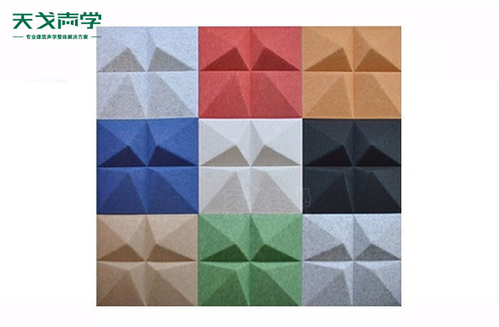 天戈3D菱形聚酯纖維吸音板采用的纖維板材是經高技術熱壓合成繭棉形狀,孔隙率可達85%以上。背后擁有3D空腔設計,凹凸部分可以充分地對多余的聲線進行擴散,可實現寬頻吸聲、擴散,使聲音更加清晰飽滿。3D菱形聚酯纖維吸音板采用小于國家規定甲醛釋放量的綠色原材,代替以往的玻璃纖維等材料,可循環再用,環保等級達E1級。