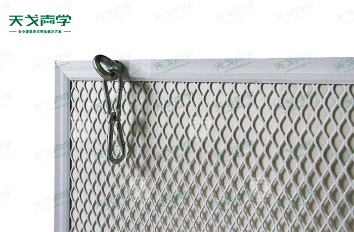 金屬網(wǎng)狀空間吸聲體是一種懸掛在頂棚具有高效吸收性能的吸聲材料。金屬網(wǎng)狀空間吸聲體一般水平或者垂直吊掛。金屬網(wǎng)狀空間吸聲體面積占頂棚總面積的30%-45%時(shí),其材料的吸聲性能是其他聲學(xué)材料吸聲性能的2倍。