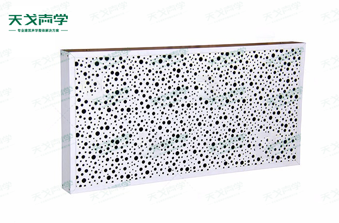 大小孔空間吸聲體是一種懸掛在頂棚具有高效吸收性能的吸聲材料。大小孔空間吸聲體一般水平或者垂直吊掛。大小孔空間吸聲體面積占頂棚總面積的30%-45% 時,其材料的吸聲性能較其他聲學(xué)材料好。