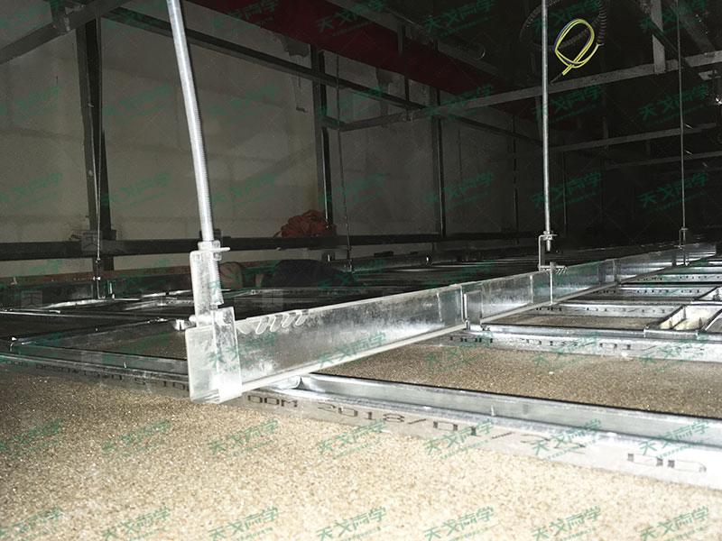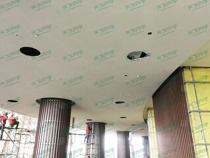 針對(duì)廊坊大劇院這個(gè)項(xiàng)目,天戈聲學(xué)在材料的選擇上非常慎重,根據(jù)相關(guān)標(biāo)準(zhǔn)和規(guī)定,劇院的材料要求觀眾廳的天棚、墻面、地面裝修材料不應(yīng)低于A1級(jí),當(dāng)采用B1級(jí)裝修材料是應(yīng)設(shè)置相當(dāng)?shù)南涝O(shè)施;頂棚、墻面裝飾采用的龍骨材料均應(yīng)為A級(jí)材料。