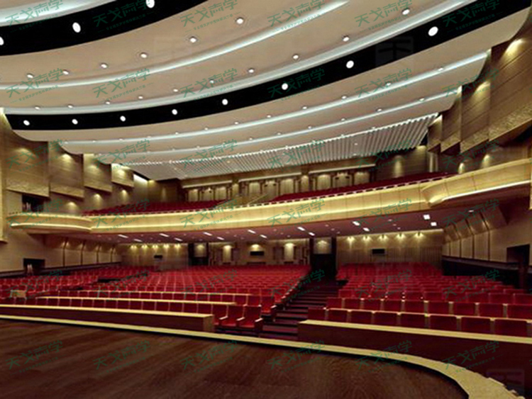 在音樂廳部分,天戈聲學用槽木吸音板、槽鋁吸音板以及大規(guī)格軟包吸音板打造了內部空間,保證音樂廳具備出色的空間聲學效果,混響時間在1.5至1.8秒之間,營造出和諧完美的視聽享受,最大程度將臺 上天籟之音傳遞給在場觀眾!