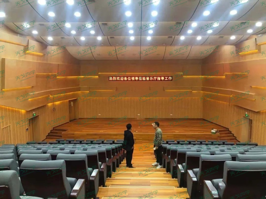 音樂廳聲學設計中的天花、墻面是重點,該音樂廳在聲學材料的使用上分別是:天花使用天戈聲學的GRG材料,墻體使用天戈聲學的mls擴散體。除此之外還有天戈聲學其他的一些輔助材料。
