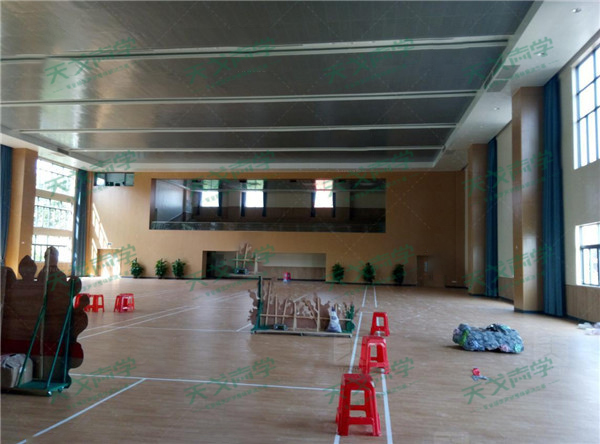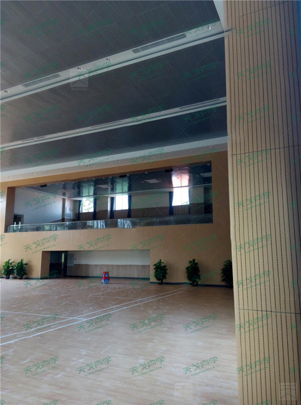 該項目平面面積為1150平方,容積為9700立方。主要是為學生們進行體育活動從能提升學生們的體能素質。所以在聲學環境中是不可忽視的,該項目為我司做深化聲學方案從隔聲先考慮,可達到在進行活動中不影響樓上,樓下的正常上課。在場管內四周墻身、天花都采用隔音一系列產品打造房中房結構,與采用專業隔音門。通過處理后隔絕了55分貝的音量,隔音門隔絕了45分貝以上的音量。不再讓噪聲影響其他課室正常使用。再到場館內避免聲學缺陷,例如:回聲,多重回聲,顫動回聲等聲學缺陷。我司采用在墻身四周總面積1100平方上安裝吸聲結構表面采用槽木吸音板28/4,穿孔率達到9%.通過處理后優化好場館內存在的聲學缺陷。讓使用過程中體現出優質聽覺不再為回聲與語言清晰度而苦惱。