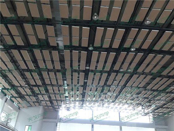 2015年6月學(xué)校就此項(xiàng)目立項(xiàng),2016年10月確定由我公司 佛山天戈科技有限公司進(jìn)行體育場(chǎng)館的聲學(xué)深化和施工。我公司接到此項(xiàng)任務(wù)后,首先與設(shè)計(jì)方共同探討了體育館聲學(xué)設(shè)計(jì)方案,經(jīng)過(guò)一個(gè)禮拜的深化和完善,最后制定出合理的聲學(xué)方案,墻面采用天戈環(huán)??啄?a href="http://www.caoyangyijia.cn/" target="_self" title="吸音板" style="color: rgb(28, 87, 196); text-decoration-line: underline; margin: 0px; padding: 0px; border: none;">吸音板,天花安裝平板吸聲體,學(xué)校領(lǐng)導(dǎo)也一致認(rèn)可。