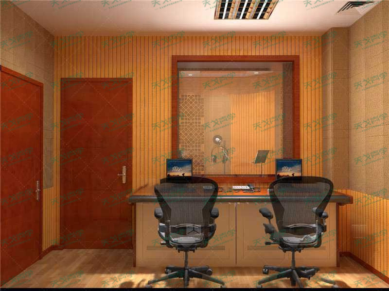 錄音棚的隔音采用了我司隔音量高的阻尼隔音板、隔音氈、隔音棉,整個房間做成房中房的結構,地面采用隔音減震膠做減震處理。吸音處理方面,飾面采用了A級防火陶鋁吸音板、QRD聲學擴散體、聲學反射板等吸音材料。