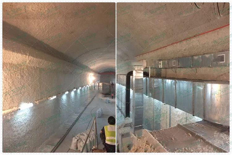 1、在隧道四周墻面和吊頂做HF無機(jī)復(fù)合吸聲材料,通過吸聲降到整個(gè)隧道的混響時(shí)間,改善隧道的聲學(xué)缺陷,如:回聲、多重回聲、聲聚焦、聲音疊加等。聲學(xué)實(shí)驗(yàn)證明四周墻面和吊頂做吸音,整個(gè)聲場的噪聲值可以降低6dB~10dB.通過吸聲來降低設(shè)備的噪聲在隧道里面產(chǎn)生的回聲。