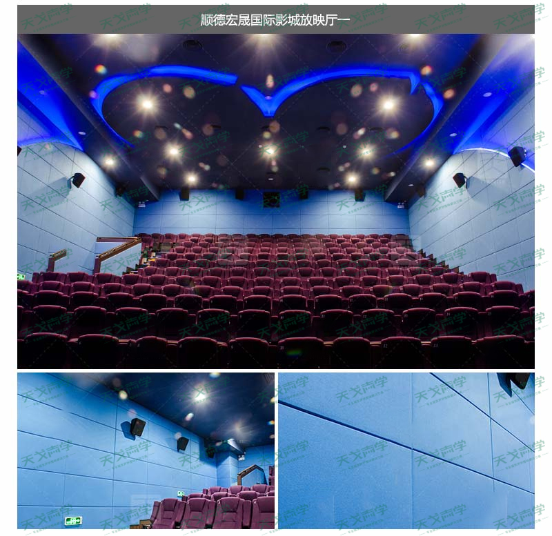 經(jīng)研究決定,該影城采用了天戈聲學(xué)生產(chǎn)的軟包吸音板2000多平方米,利用軟包吸聲材料消除觀眾廳聲聚焦、顫動(dòng)回聲、多重回聲等聲學(xué)缺陷;減少了噪聲對擴(kuò)聲系統(tǒng)的聲干擾,營造了一個(gè)良好的視聽效果。項(xiàng)目完工后得到客戶的一致認(rèn)可與好評!
