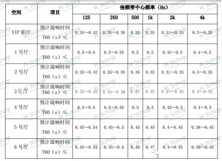 根據(jù)各影廳容積大小,設(shè)計(jì)目標(biāo)如下所示:
